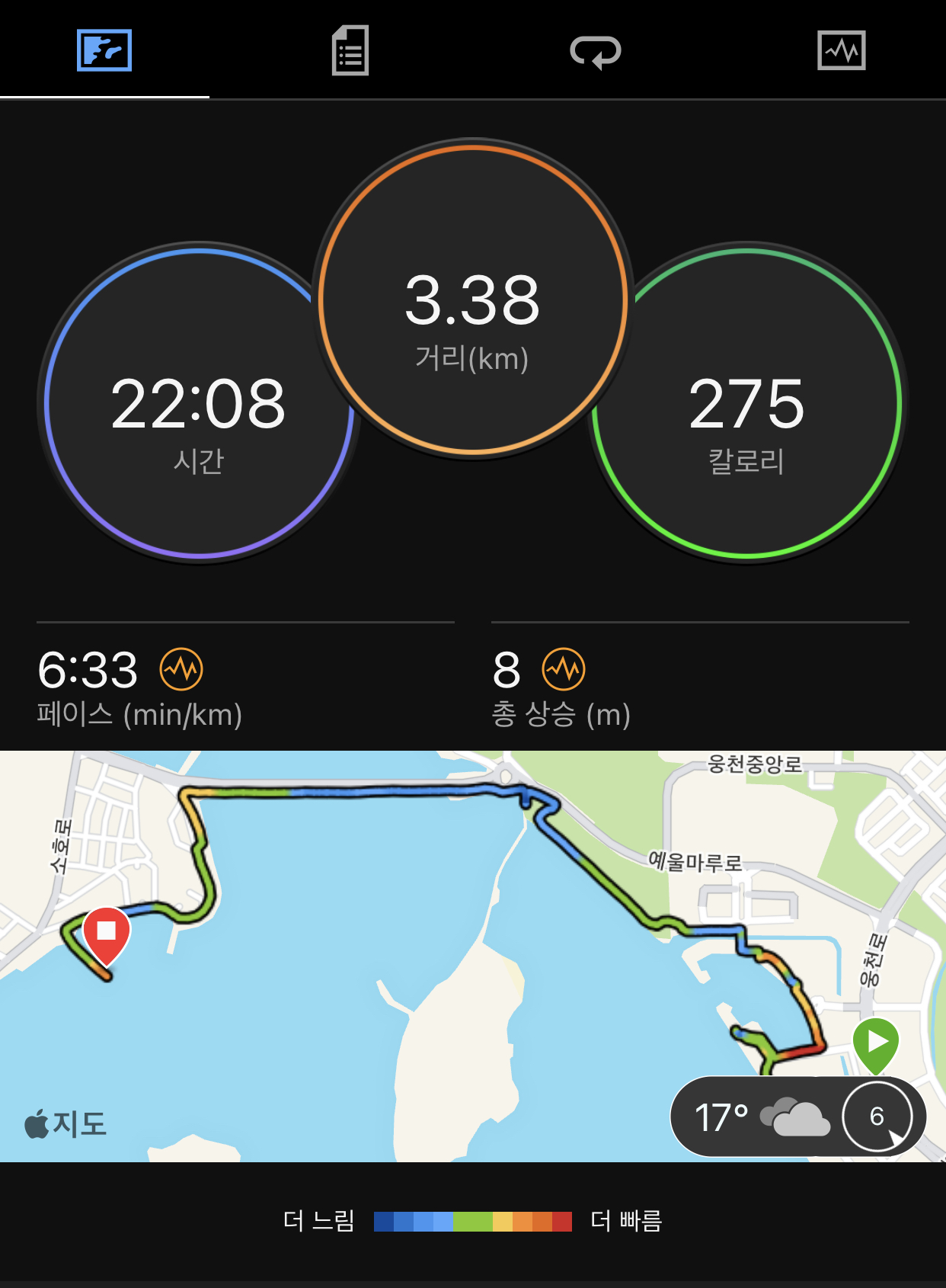 역시나 오랜만에 달리니 몸이 무겁게 느껴진다. 무려 4일 만에 달려본다.